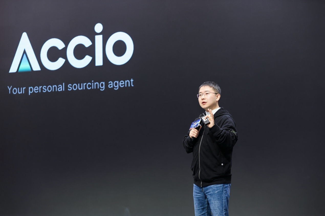 阿里国际站总裁张阔在现场演示Accio 阿里官方